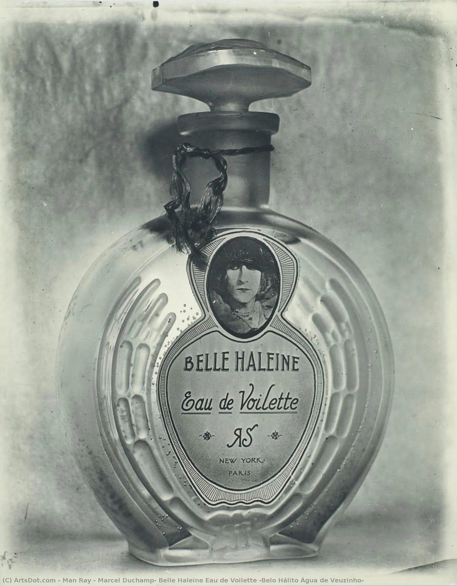 Scent is also implicated in commodification, particularly that of art and (female) life. In 1920, Duchamp developed Belle Haleine, Eau de Voilette (Beautiful Breath, Veil Water) as a prototype fragrance fashioned from a Rigaud flagon, with a substituted label photographed by Man Ray and depicting the artistâs alter ego, Rrose SĂ©lavy. While Rigaud called their product un air embaumĂ© (meaning both âperfumedâ and âembalmedâ), Duchamp obversely crowned his (empty) bottle as a means of âbreathâ and âwaterâ. At its surface level, Belle Haleine demonstrates the rarefaction of artâ or, perhaps more accurately, of the artist. It is a contained, consumable essence (as Hal Foster wrote in Artforum, a âmagic elixirâ), made even more poignant by its record-breaking 2009 sale by Christieâs Paris for a cool $11.36m.